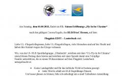 UL- Saison Eröffnungs-„Fly-In“ HLB/DAeC am 01.05.2022 auf dem Flugplatz EDFT - Lauterbach Liebe UL -Fliegerkolleginnen, liebe UL-Fliegerkollegen, viele Menschen sind auf der Flucht und haben ihre Heimat wegen des Kriegs verlassen. Weiterlesen ... über UL- Saison Eröffnungs-„Fly-In“ HLB/DAeC am 01.05.2022 auf dem Flugplatz EDFT - LauterbachNews von Susan BreitenbachZum Verfassen von Kommentaren bitte Anmelden oder Registrieren.