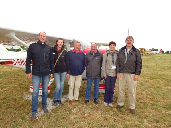 "Erbarmen, die Hesse' komme'!". Ein Teil der hessischen Teilnehmer am Deutschlandflug 2015 (v.l.n.r.): Robert Deppe, Carla Moses, Oskar Deppe, Kalle Bender, Astrid und Marcus Ciesielski.