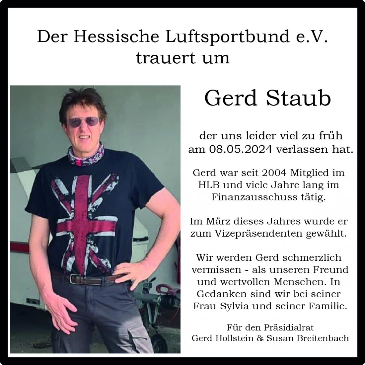 Wir trauern um unseren Vizepräsidenten Gerd Staub