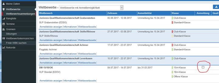 Jeder Pilot kann sich NUR in der Klasse anmelden, für die er qualifiziert/Nachrücker ist.