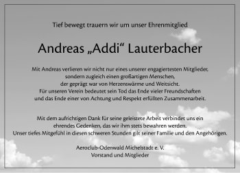 Leider gibt es zum Schluss des Newsletters etwas Trauriges zu vermelden: Bei einem Flugzeugabsturz am 04.09.2016 starben Addi Lauterbacher sowie Rainer Schönwald und seine Frau.